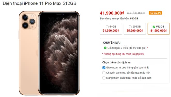 iPhone giảm giá 11 Pro Max (đồng giảm 02 triệu đồng)