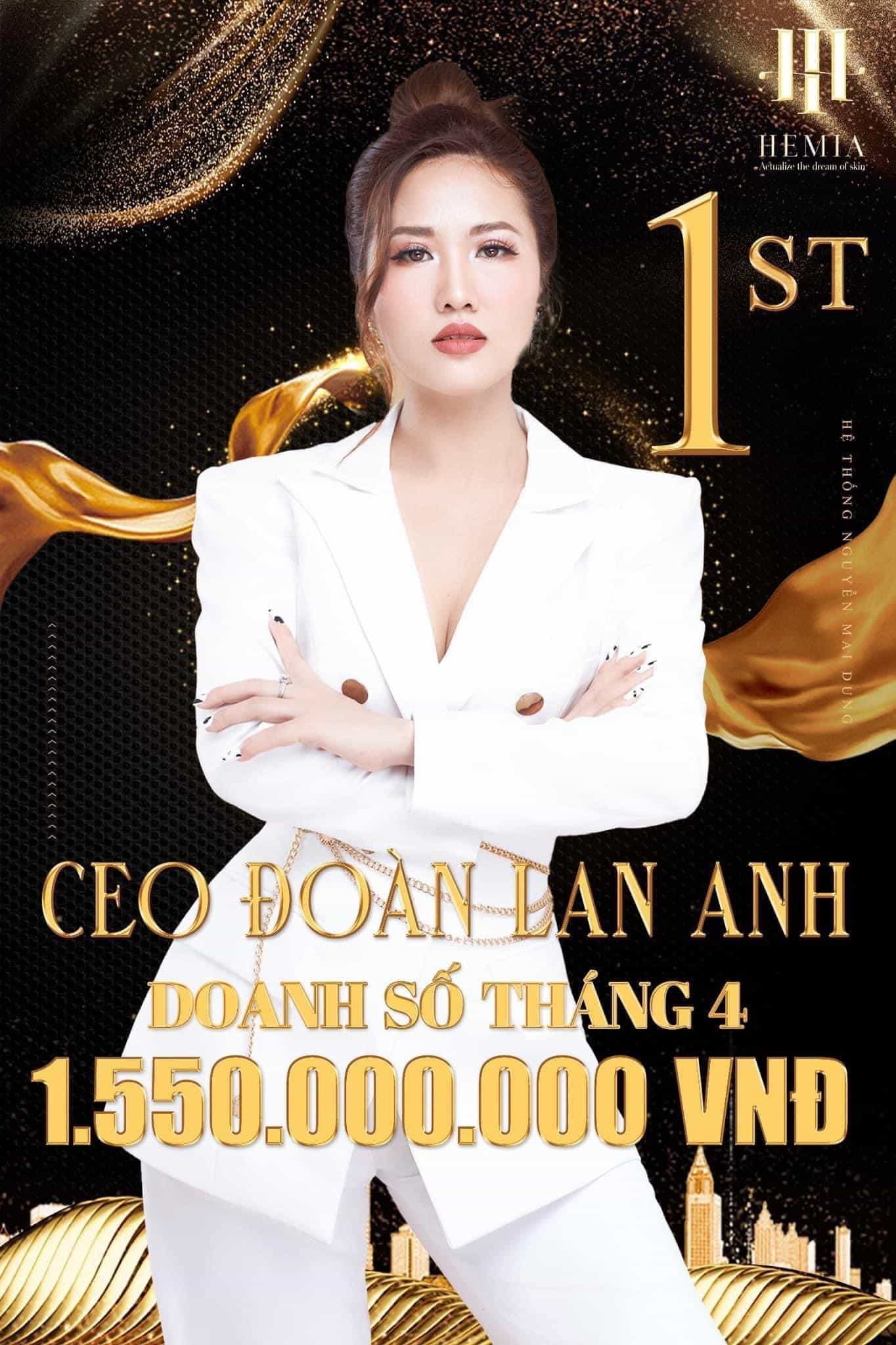 Không chỉ dừng lại ở việc phát triển bản thân, CEO Đoàn Lan Anh còn mong muốn chia sẻ bí quyết và kinh nghiệm của mình cho những cô gái có khao khát kinh doanh thành công. Hiện tại, hệ thống kinh doanh online mỹ phẩm Hemia đã phủ rộng khắp toàn quốc và lan sang cả Nhật Bản, Đài Loan, Hàn Quốc… Hệ thống đang tạo công ăn việc làm cho hàng trăm cô gái khác có thu nhập ổn định, có thể tự mua được xe xịn, nhà sang, nâng cao giá trị bản thân, từ đó được gia đình, bạn bè, đồng nghiệp tôn trọng và ngưỡng mộ.